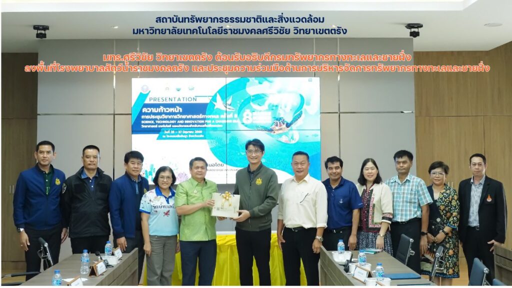 ในวันที่ 6 ธันวาคม 2567 ที่มหาวิทยาลัยเทคโนโลยีราชมงคล … อ่านเพิ่มเติม มทร.ศรีวิชัย วิทยาเขตตรัง ต้อนรับอธิบดีกรมทรัพยากรทางทะเลและชายฝั่ง ลงพื้นที่โรงพยาบาลสัตว์น้ำราชมงคลตรัง และประชุมความร่วมมือด้านการบริหารจัดการทรัพยากรทางทะเลและชายฝั่ง