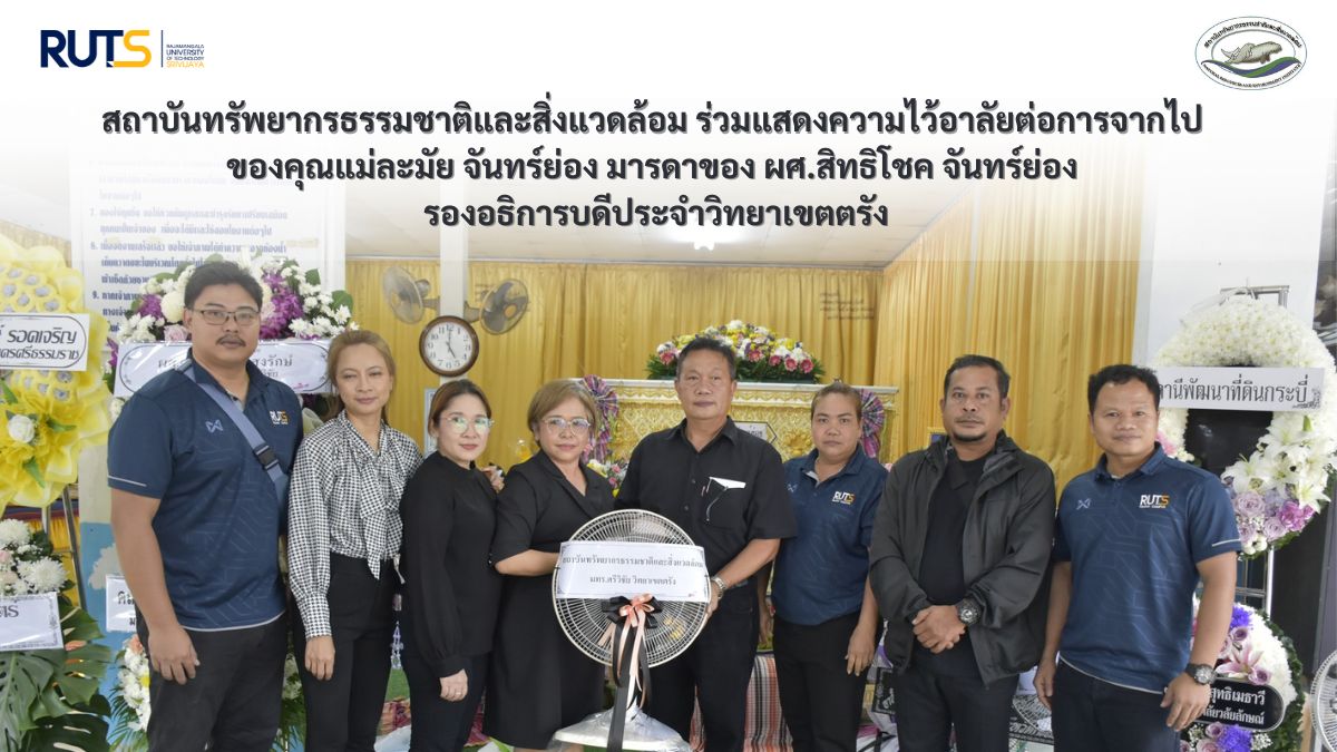 เมื่อวันที่ 26 พฤศจิกายน 2568 ผู้ช่วยศาสตราจารย์ ดร.ประเสริฐ ทองหนูนุ้ย ผู้อำนวยการสถาบันทรัพยากรธรรมชาติและสิ่งแวดล้อม มหาวิทยาลัยเทคโนโลยีราชมงคลศรีวิชัย วิทยเขตตรัง มอบหมายให้ ผู้ช่วยศาสตราจารย์ ดร.วรพร ธารางกูร รองผู้อำนวยการสถาบันทรัพยากรธรรมชาติและสิ่งแวดล้อม พร้อมด้วยบุคลากร ร่วมวางพวงหรีดเพื่อแสดงความเสียใจ และสวดพระอภิธรรม คุณแม่ละมัย จันทร์ย่อง มารดาของ ผศ.สิทธิโชค จันทร์ย่อง โดยมีศาสตราจารย์ ดร.สุวัจน์ ธัญรส อธิการบดีมหาวิทยาลัยเทคโนโลยีราชมงคลศรีวิชัย เป็นประธานในพิธีสวดพระอธิธรรม พร้อมคณะผู้บริหาร คณาจารย์ บุคลากร มทร.ศรีวิชัย ณ วัดเก่า (ต้นโพธิ์) บ้านบางผึ้ง ตำบลโคกยาง อำเภอเหนือคลอง จังหวัดกระบี่ มีพิธีสวดพระอภิธรรมทุกคืน และในวันอาทิตย์ที่ 30 พฤศจิกายน 2568 กำหนดพิธีฌาปนกิจ ณ เมรุวัดบางผึ้ง ตำบลโคกยาง อำเภอเหนือคลอง จังหวัดกระบี่