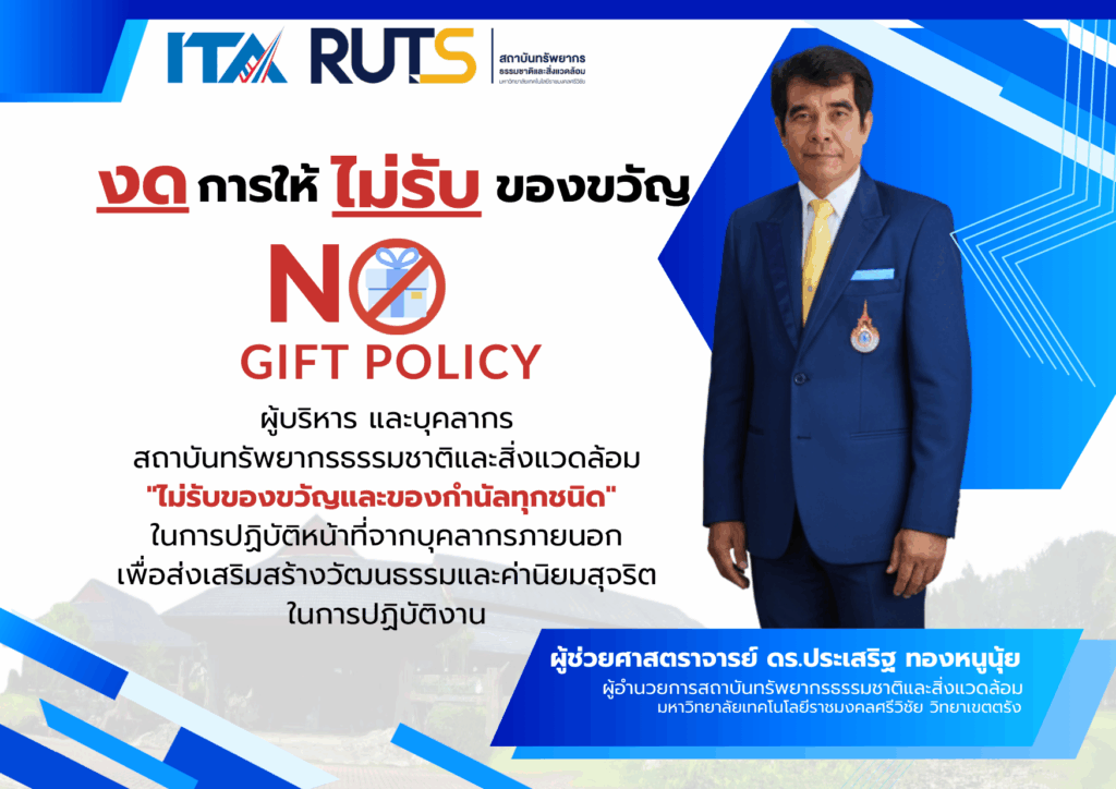 สถาบันทรัพยากรธรรมชาติและสิ่งแวดล้อม มหาวิทยาลัยเทคโนโลยีราชมงคลศรีวิชัย วิทยาเขตตรัง ได้ยึดถือและปฏิบัติตามนโยบายดังกล่าวอย่างเคร่งครัด โดยไม่รับของขวัญหรือของกำนัลทุกชนิดจากการปฏิบัติหน้าที่แต่อย่างใด ทั้งนี้เป็นไปตามแบบฟอร์มรายงานการรับของขวัญและของกำนัลตามนโยบาย No Gift Policy อย่างเป็นทางการ