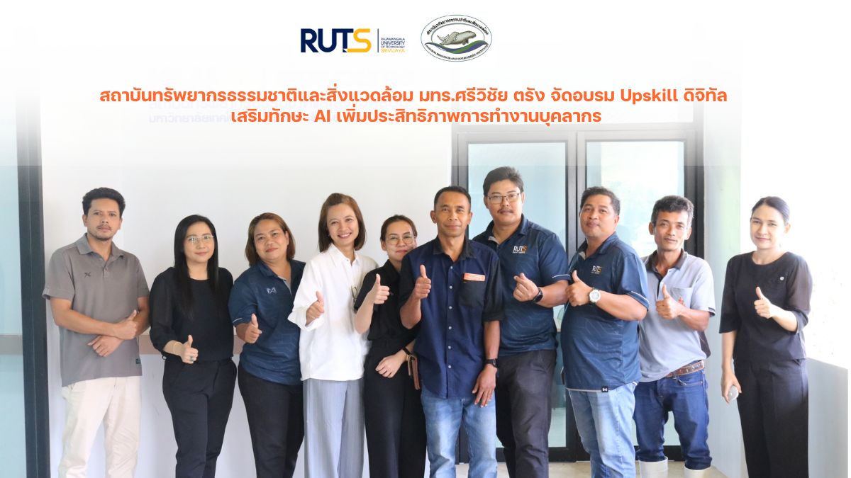 วันที่ 5 กุมภาพันธ์ 2569 สถาบันทรัพยากรธรรมชาติและสิ่งแวดล้อม มหาวิทยาลัยเทคโนโลยีราชมงคลศรีวิชัย วิทยาเขตตรัง จัดโครงการ Upskill บุคลากรด้านดิจิทัล ภายใต้หัวข้อ “การใช้ AI ในการปฏิบัติงาน” ครอบคลุมการใช้งาน ChatGPT และ Gemini ณ ห้องประชุมพัฒนมณี สถาบันทรัพยากรธรรมชาติและสิ่งแวดล้อม การจัดโครงการในครั้งนี้มีเป้าหมายเพื่อพัฒนาศักยภาพบุคลากรให้สามารถนำเทคโนโลยีปัญญาประดิษฐ์ (AI) มาประยุกต์ใช้ในการทำงาน เพิ่มความรวดเร็ว และประสิทธิภาพในการปฏิบัติงาน รวมถึงช่วยลดระยะเวลาในกระบวนการทำงานต่าง ๆ