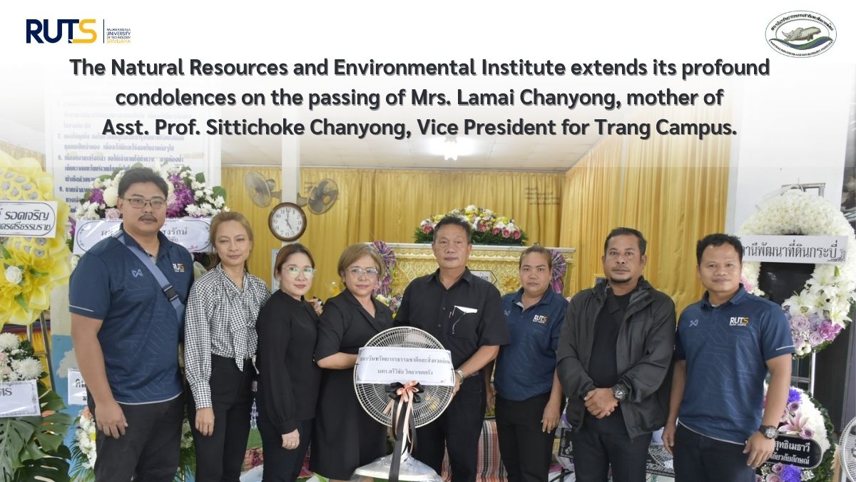 On November 26, 2025, Asst. Prof. Dr. Prasert Thongnoonui, Director of the Natural Resources and Environmental Institute, Rajamangala University of Technology Srivijaya (RMUTSV), Trang Campus, assigned Asst. Prof. Dr. Woraporn Tarangkoon , Deputy Director of the Institute, along with institute personnel, to attend the funeral ceremony. They presented a wreath to express their sincere condolences and participated in the evening prayers for the late Mrs. Lamai Chanyong.
